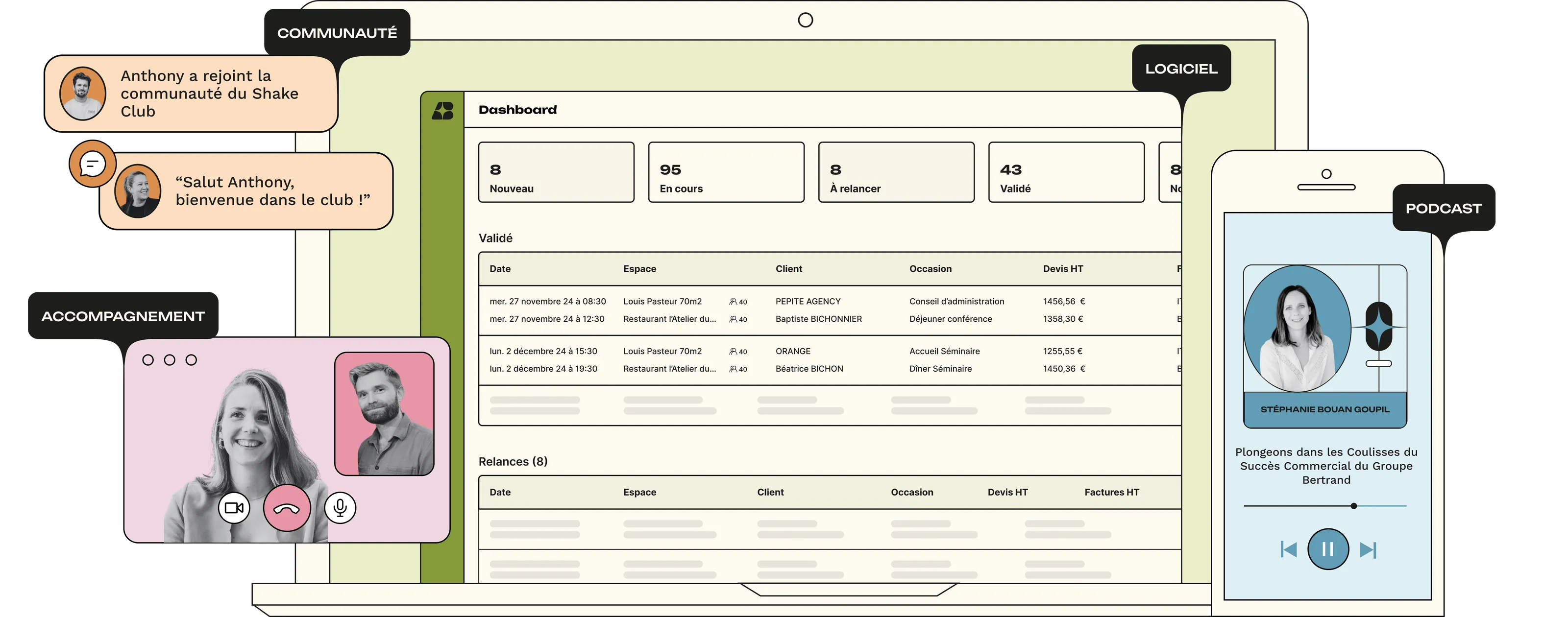 Parce que vous partagez tous les mêmes challenges, le Shake Club a pour mission de créer un espace dynamique et collaboratif où chaque membre peut prendre la parole, évoluer et prospérer. Notre objectif est de vous offrir la possibilité de networker, d’accéder à des ressources exclusives mais aussi de participer à des évènements privés.