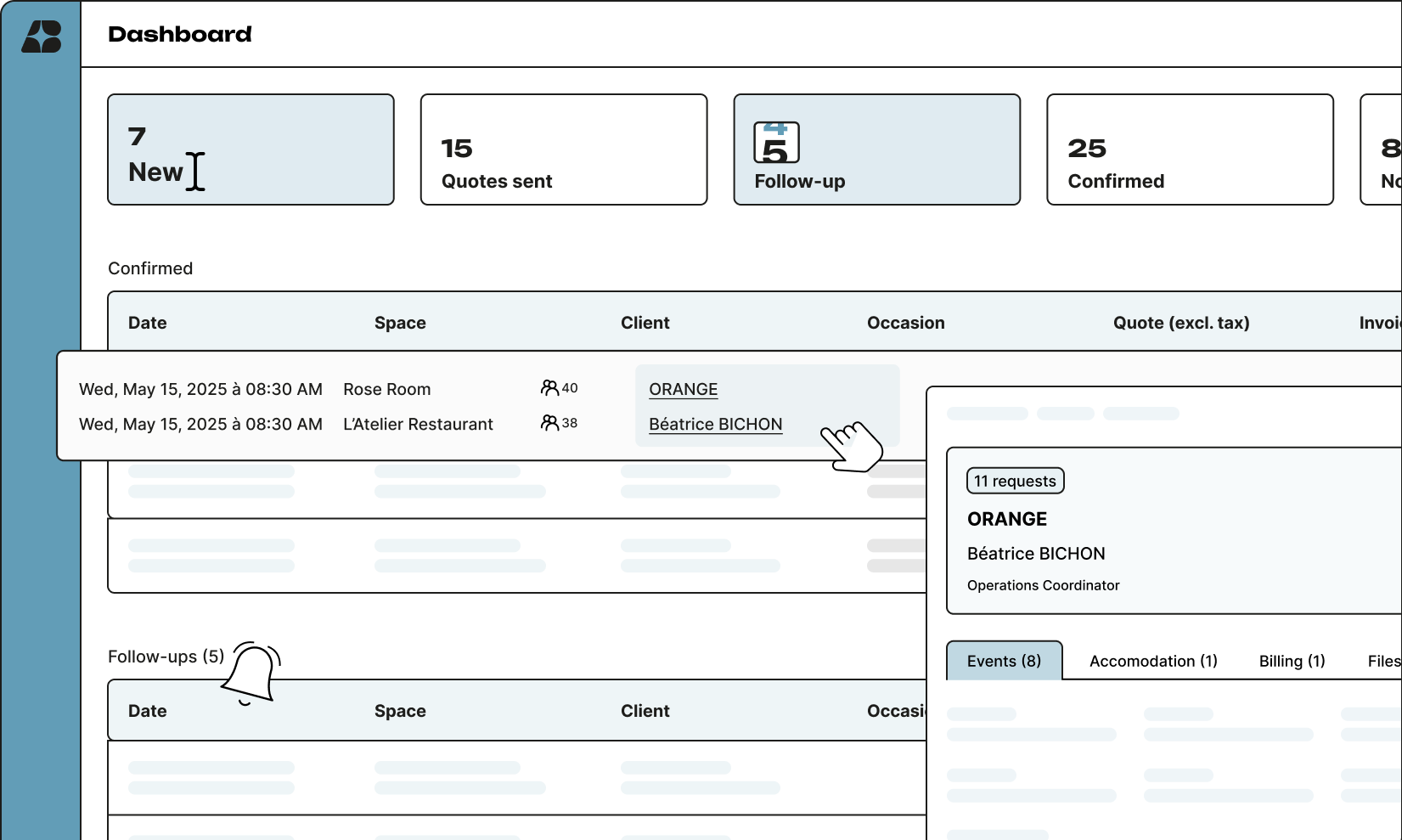 What if all of your key information was in one place? From qualification to quotation, including the BEO and invoicing... Everything at your fingertips!